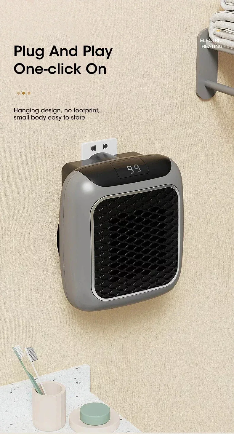 Space-Saving Wall Mount: Plugs directly into the socket with no messy wires or cables on the floor. Its compact design is perfect for small bedrooms, offices, dorms, and bathrooms.