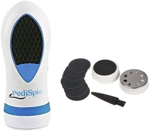 Buy the Pedi Spin Electric Callus Remover at Sahulatkart.com. This high-precision, battery-operated foot file gently buffs away rough calluses and dry skin. Features dual speeds and an internal trap to catch shavings for a mess-free pedicure. Safe, painless, and portable.