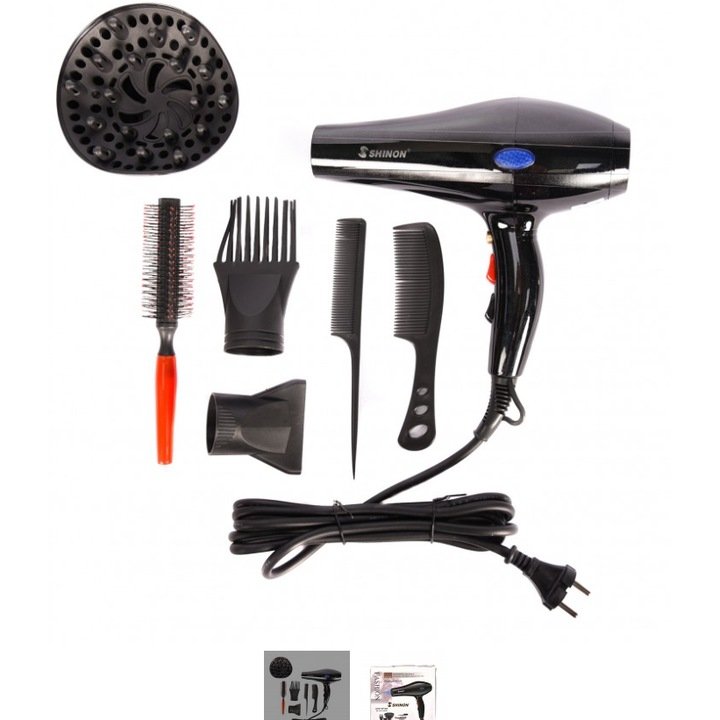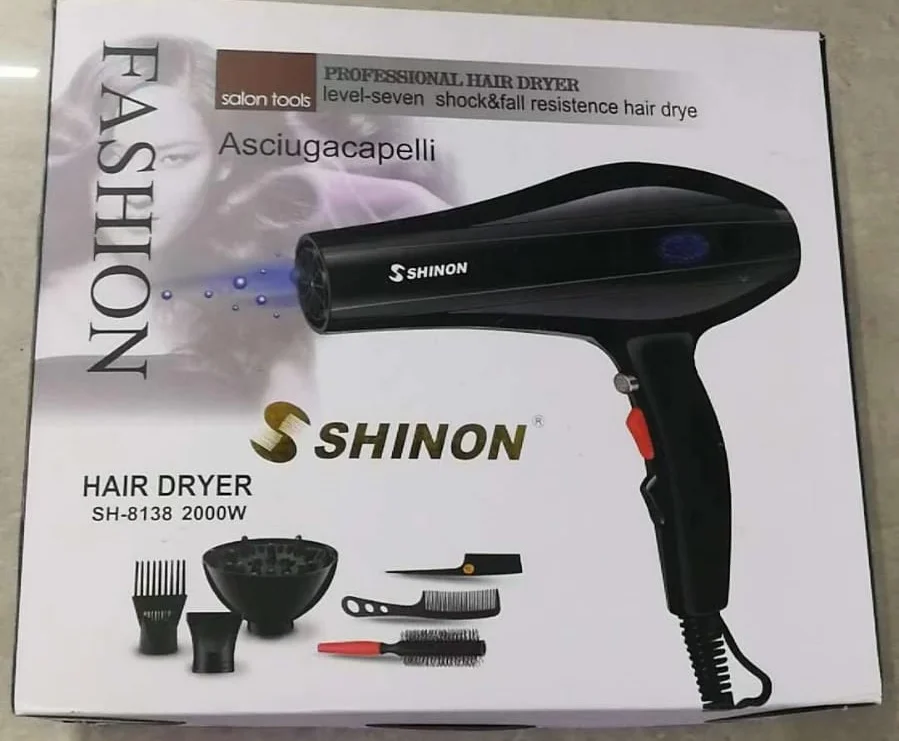 Buy the Shinon Professional Hair Dryer (Black) at Sahulatkart.com. Powerful 2000W motor with 2 speeds and 3 temperature settings plus a Cool Shot button. Features a foldable handle, ergonomic design, and styling concentrator. Perfect for salon-like results at home.
