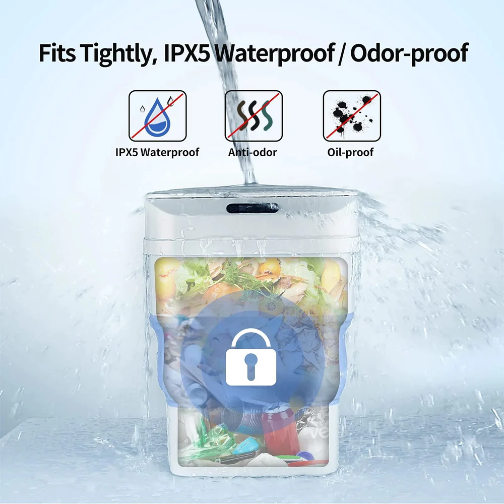 Touchless Sensor Technology: The rapid motion sensor detects movement within range (approx. 15-25cm) and opens the lid in 0.3 seconds, closing it automatically after 5 seconds of inactivity.